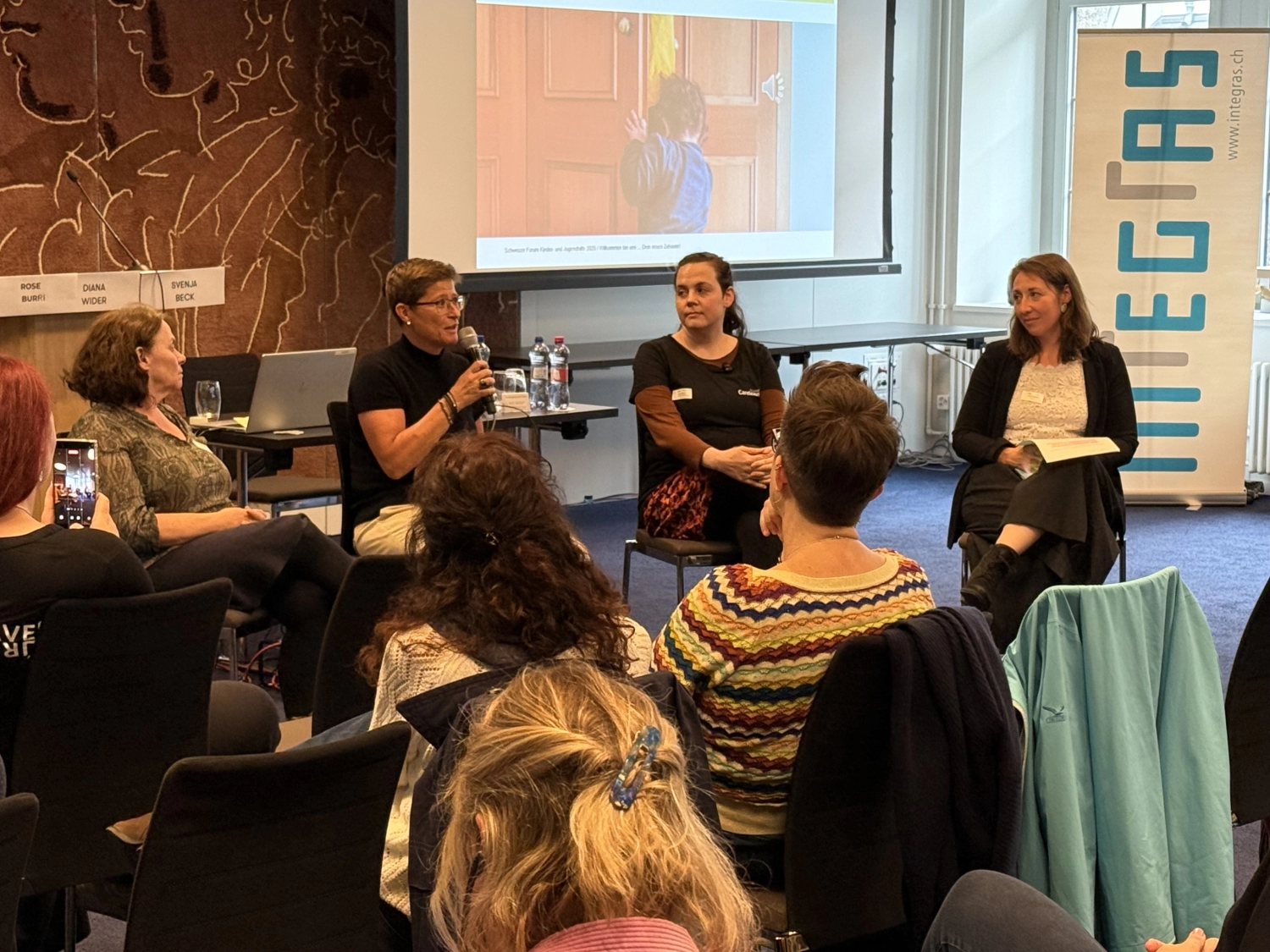 Das abschliessende Podium mit Diana Wider (KOKES), Svenja Beck (Schoio AG) und Rose Burri (Careleaver Schweiz) vertiefte diese Überlegungen. Deutlich wurde: Eine Vertrauensperson kann für Kinder in belastenden Situationen den entscheidenden Unterschied machen – vorausgesetzt, Fachpersonen bringen Zeit, Geduld und echtes Interesse mit. Das Wichtigste, was man dabei beachten sollte: Das Kind wählt seine Vertrauensperson selbst aus. Diana Wider betonte, dass die Grundlagen zur Umsetzung vorhanden seien: rechtlich, konzeptionell, methodisch. Nun gelte es, den Raum für Umsetzung zu nutzen – mit dem Ziel, Kindern echte Unterstützung und sichere Beziehungen zu bieten.